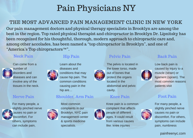 Pain Physicians NY (Brooklyn NYC) offer best in class treatment: Latest Cutting Edge, Non-Invasive Disc Decompression Procedure, Platelet Rich Plasma (PRP) Injections for Discogenic low back pain, Body Composition Analysis, High Tech Shockwave Therapy, groundbreaking Interstitial Laser Therapy among other advanced procedures. See the brand new cutting edge Brooklyn rehabilitation center. *** Internationally Recognized as Top Pain Management Specialists in NYC authorized to treat patients in New York State using Medical Marijuana *** Pain Physicians NY (Brooklyn & NYC) provides a full range of advanced pain management services to help the patients return to a healthy and pain-free life style. A comprehensive & unique approach to pain care is individualized. The most effective pain relief treatments are available here. The clinic is internationally recognized as best in class pain management doctors & specialists and was selected to be a part of international medical team for Rio Olympic Games.